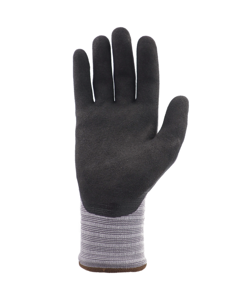 Support: Tricoté sans couture Matières du support: Nylon / Spandex Jauge: 15 Manchette: Manchette élastique Matières de l’enduction: Nitrile lisse noir (1) + Nitrile sablé noir (2) Type d’enduction: Enduction 3/4 avec pouce enduit Normes: EN388:2016 + A1:2018 : 4121X ; EN ISO 21420:2020 Emballage: Sachet Individuel Conditionnement: 12 Paires/Sachet; 10 Sachets/Carton; 120 Paires/Carton Sans silicone: Oui Sans latex: Oui